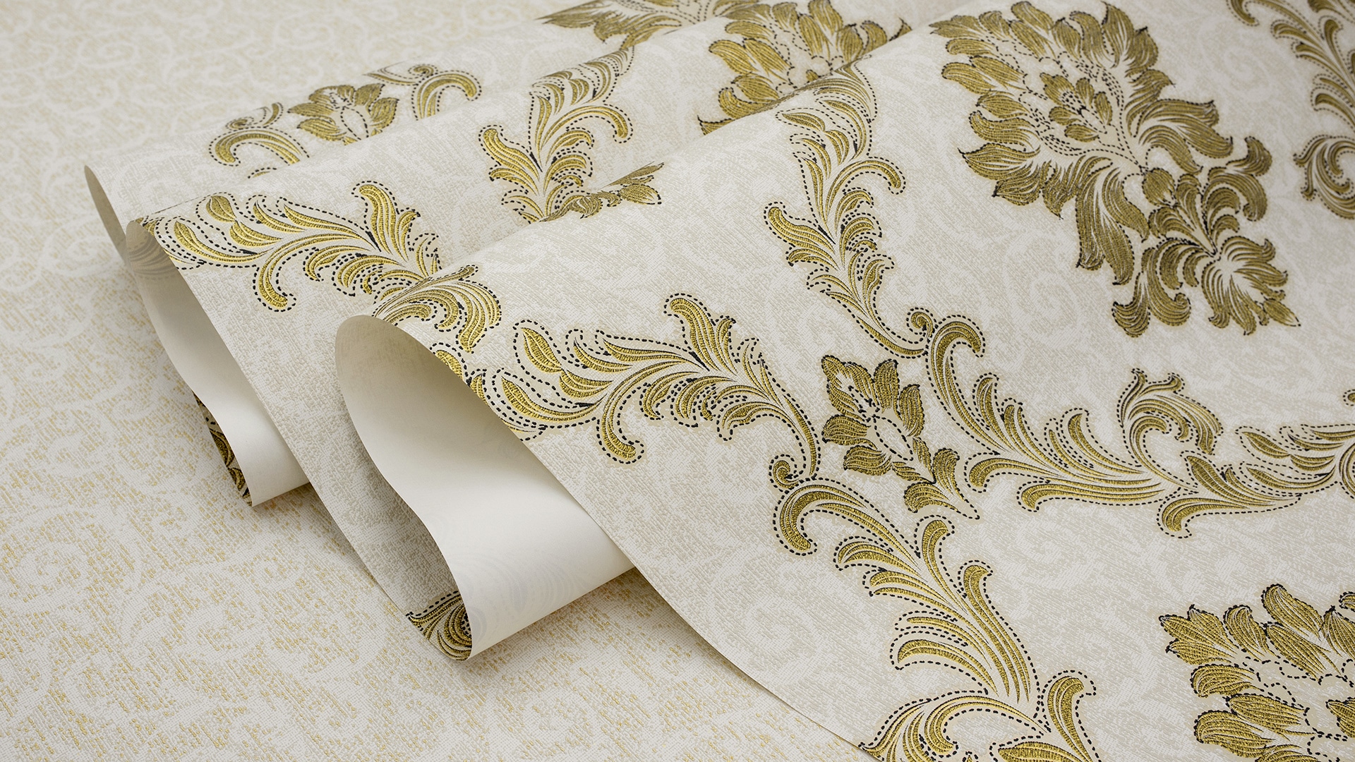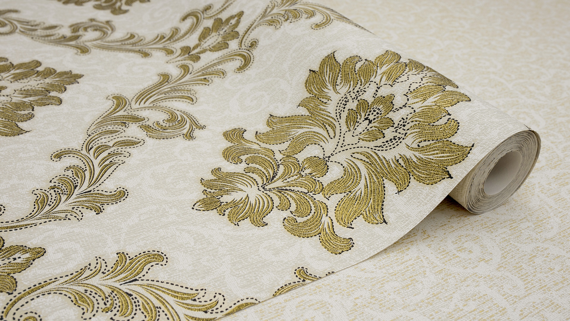 Appreciate the texture and decor of the wallpaper closer