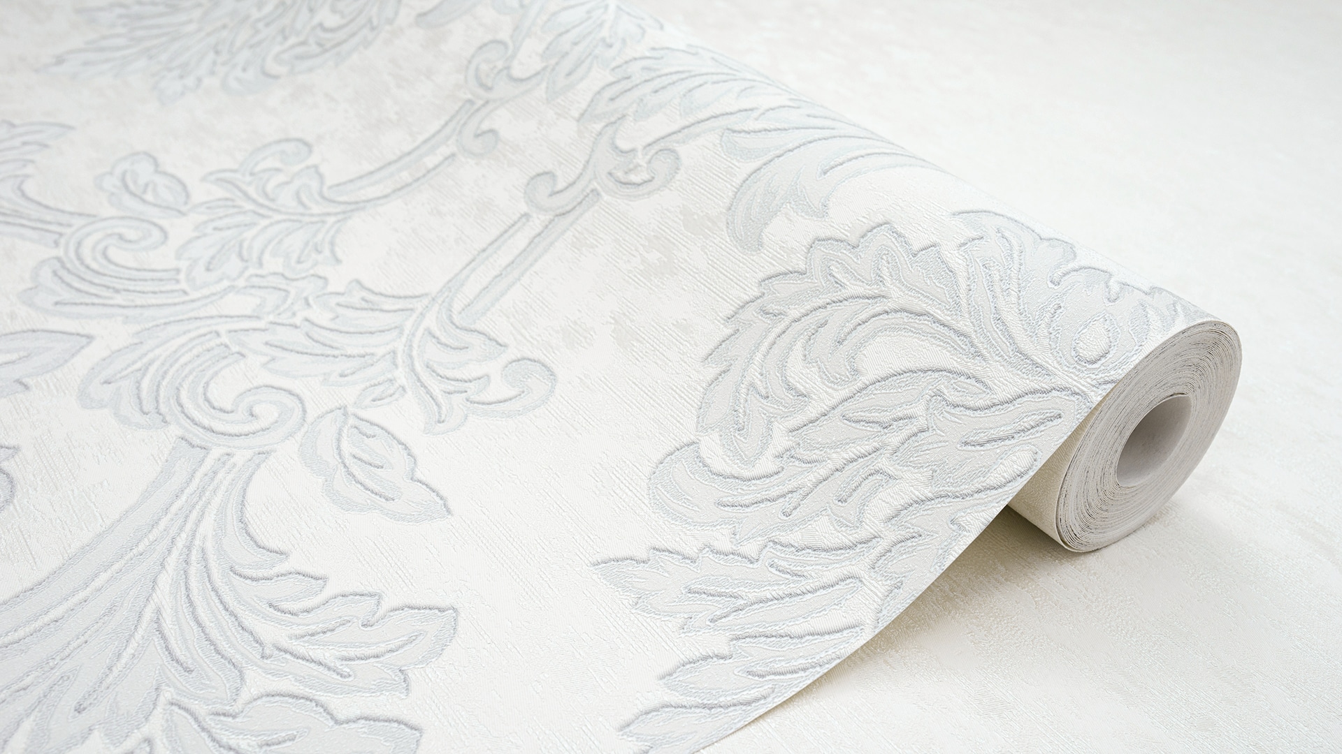 Appreciate the texture and decor of the wallpaper closer