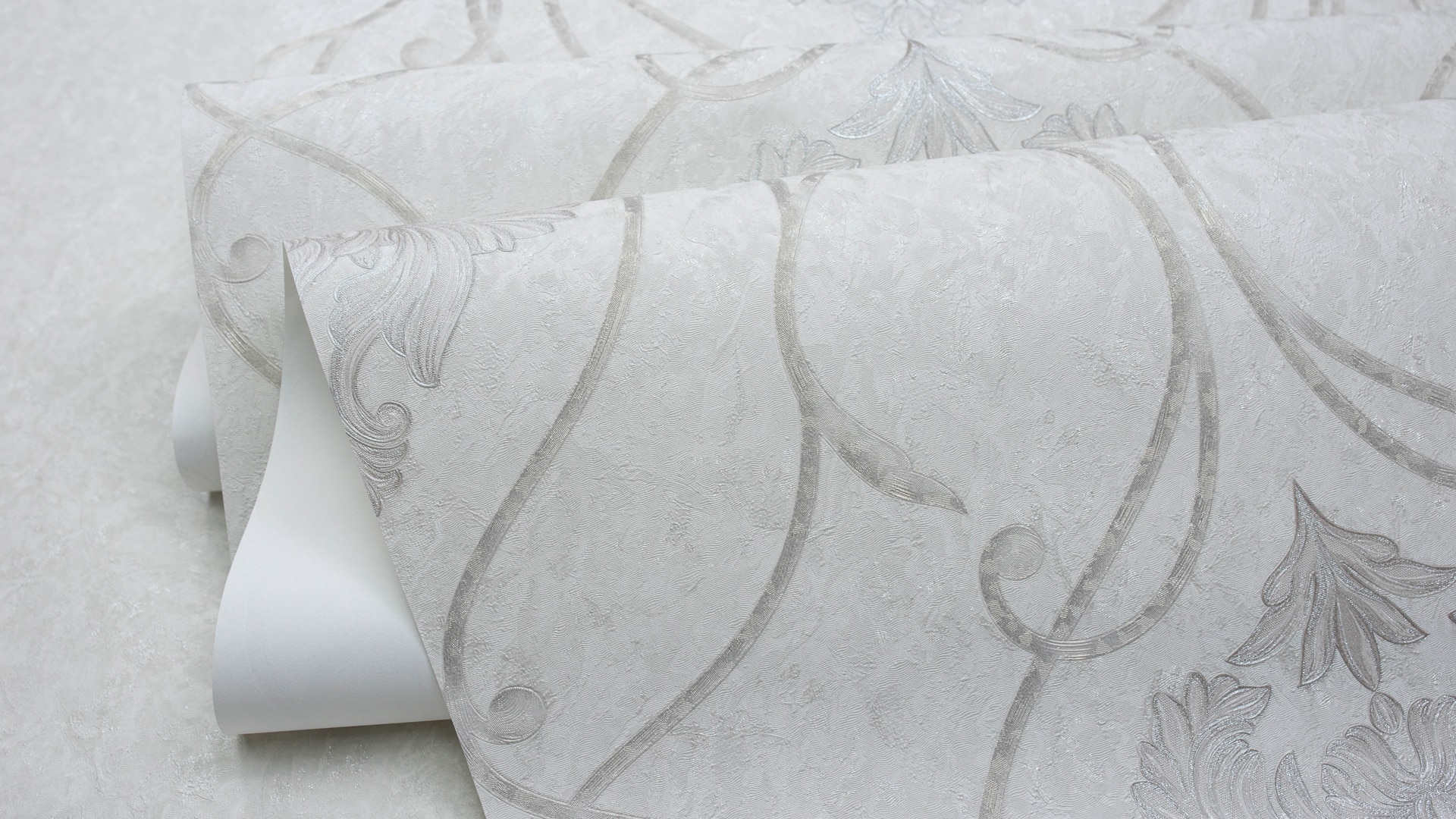 Appreciate the texture and decor of the wallpaper closer