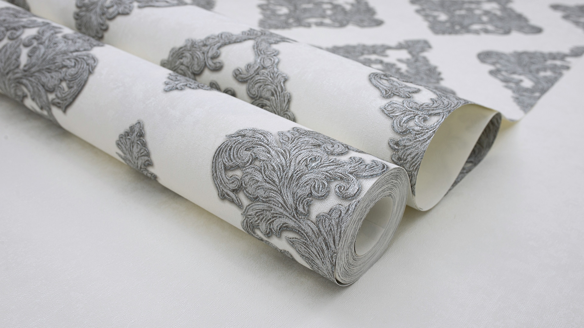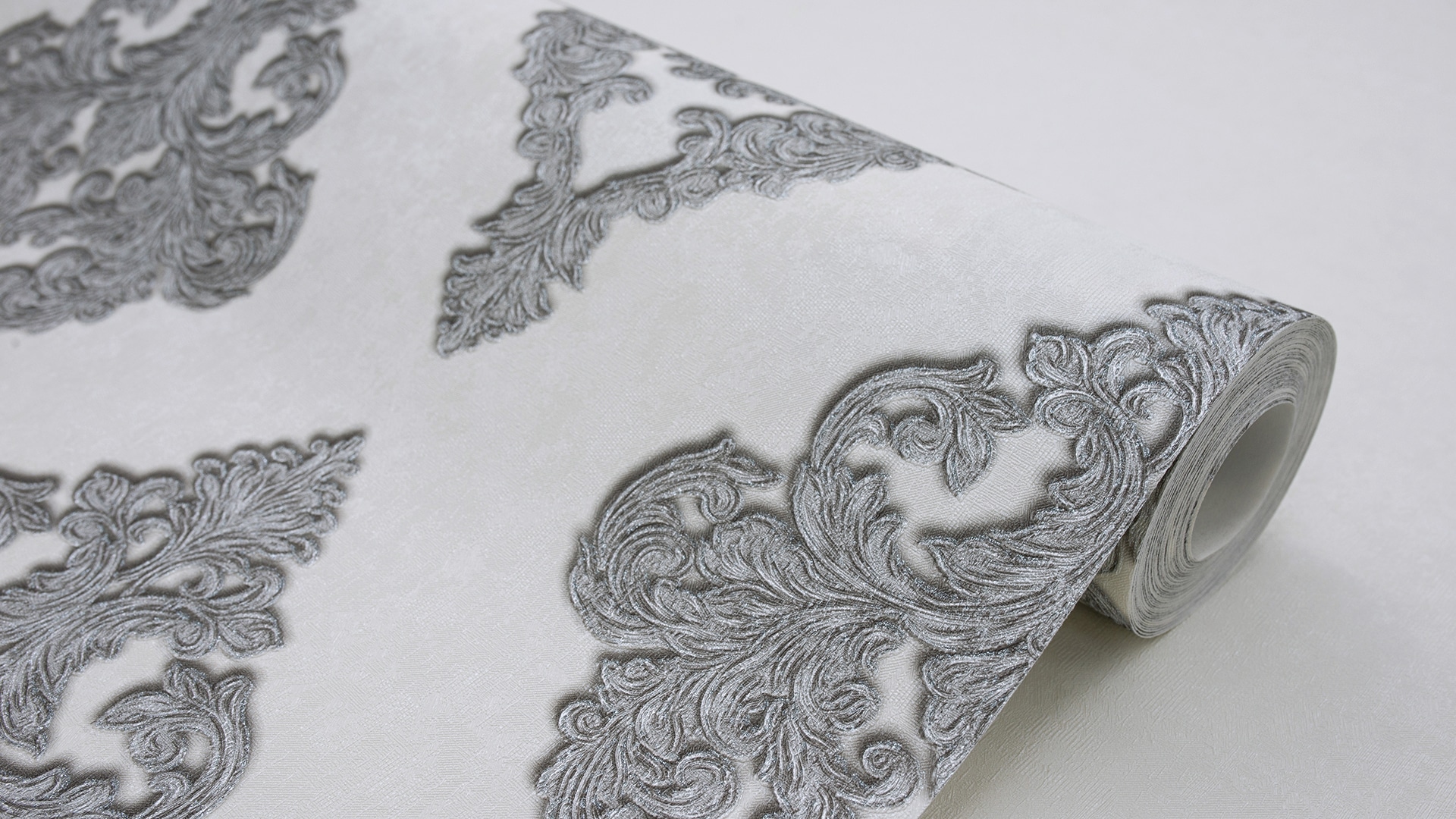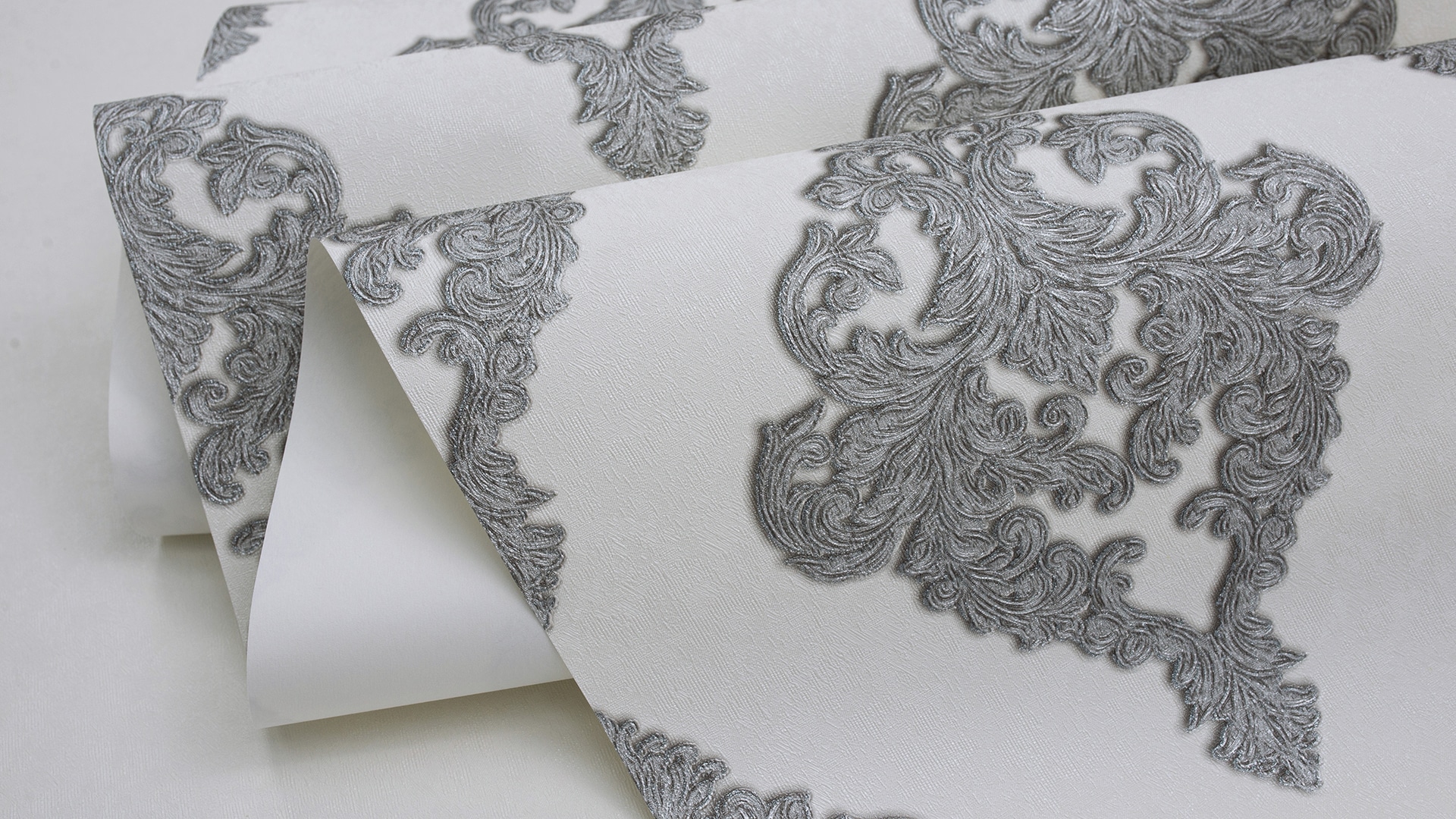 Appreciate the texture and decor of the wallpaper closer