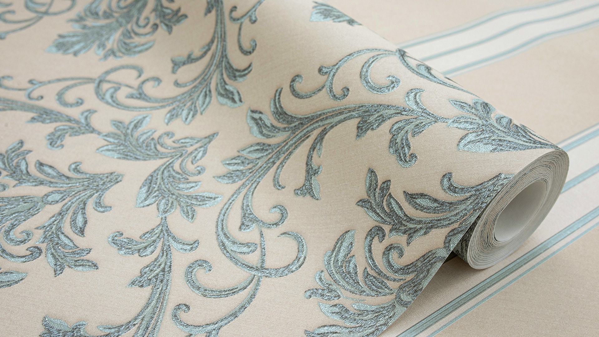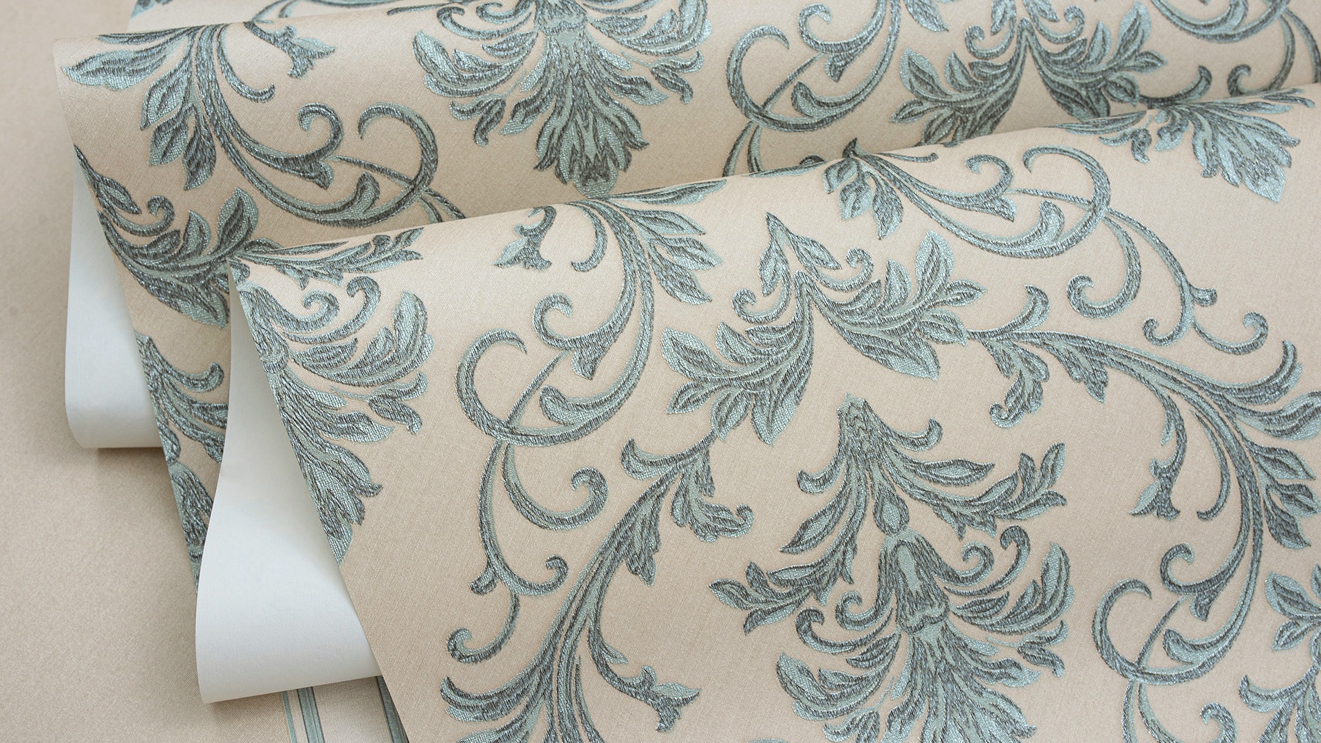 Appreciate the texture and decor of the wallpaper closer