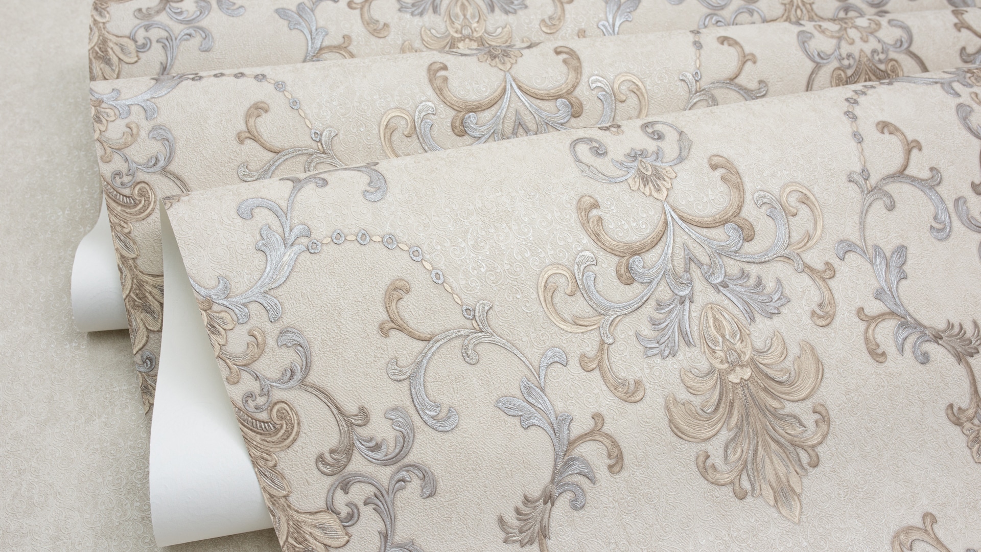 Appreciate the texture and decor of the wallpaper closer