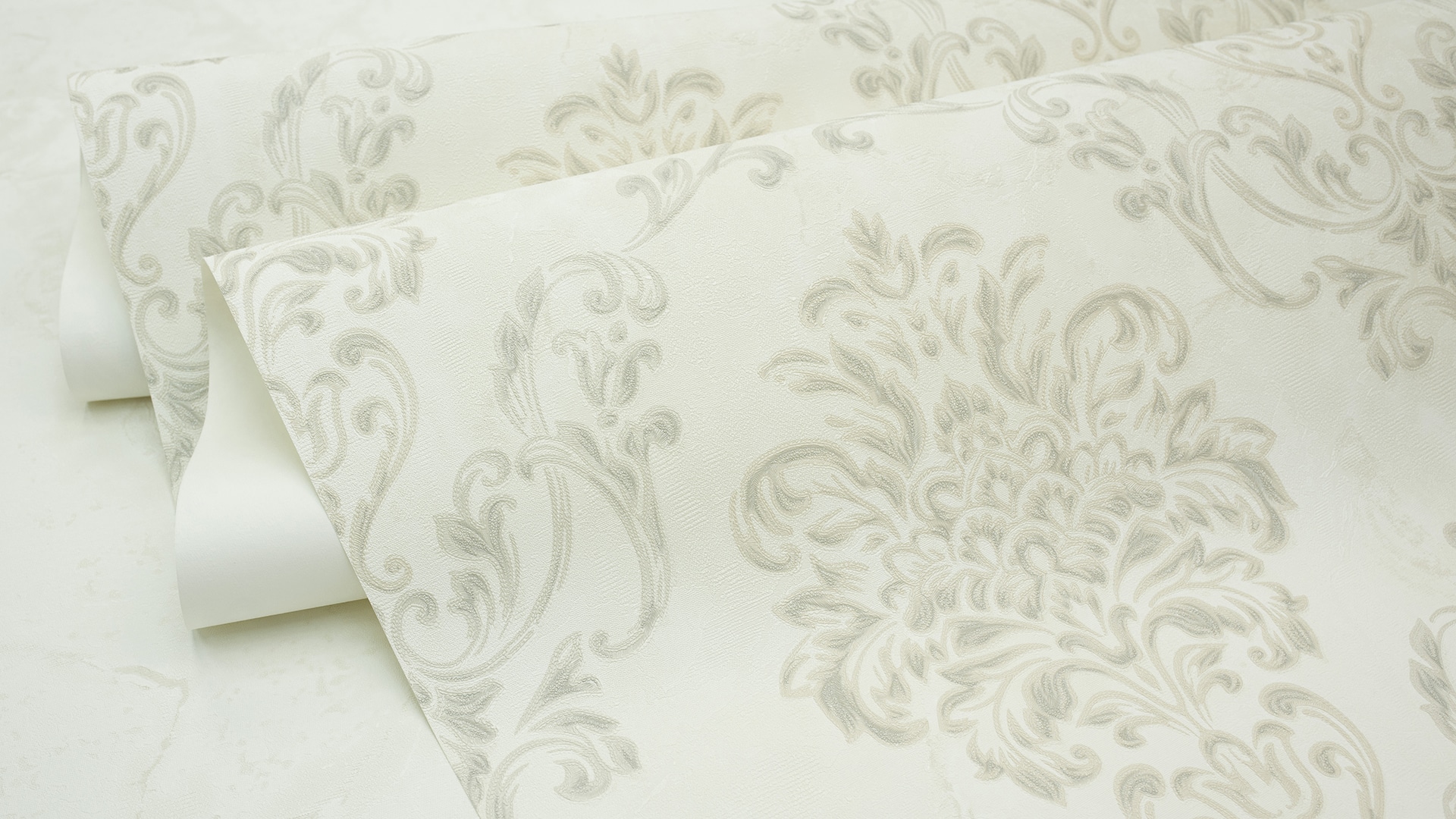 Appreciate the texture and decor of the wallpaper closer